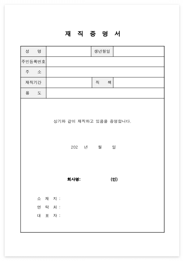 모든 양식이 그렇듯 법으로 딱 정해진 양식이 없으며, 가장 중요한 근로자와 회사의 인적사항, 회사 또는 대표자의 날인만 들어가고 확인이 되면 어느 기관이든 문제없이 통과된다. 이번 포스팅에 공유할 양식들 역시 금융기관, 관공서, 교육기관에 모두 제출해본 경험이 있는 만큼 안심하고 사용해도 된다.