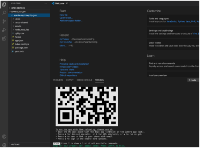 그리고 expo start 라고 입력하면