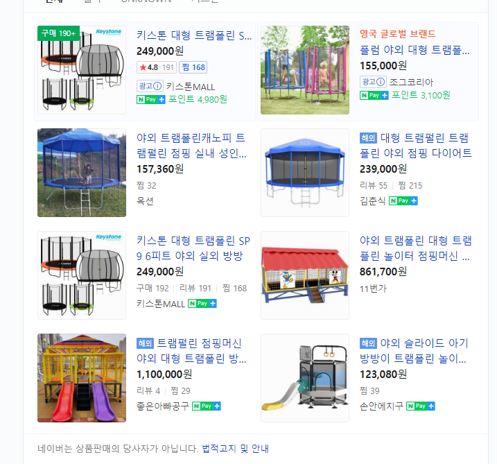 교체주기라고 했지만 정확히는 아이 연령에 따라 트램벌린을 새걸로 바꿔주는건데요. 안전망이 필요한 유아기땐 사실 부모의 손길이 잠들기 전까지 필요하고 땀빼야할 시기는 딱히 아니다보니 가성비+효율을 봤을땐 개인적으로 스스로 뛰어놀고 나올수 있는 연령대에 맞춰서만 사도 충분하단 생각입니다.