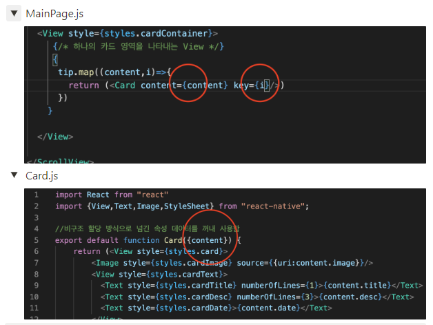 * MainPage에 있던 코드를 Card.js 로 옮기고