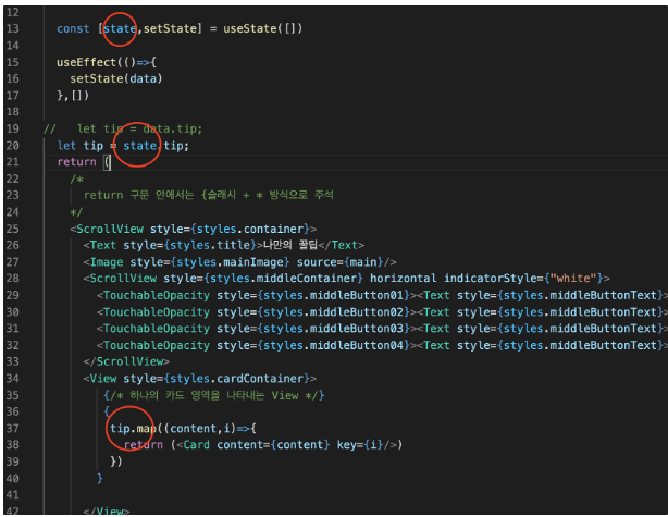 state에서 tip 키 값에 접근해서 데이터를 꺼내 map 반복문을 돌리려는데